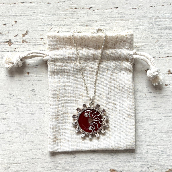 This is a masculine design on a black adjustable cord, but can equally be worn on a silver chain and suitable for men or women